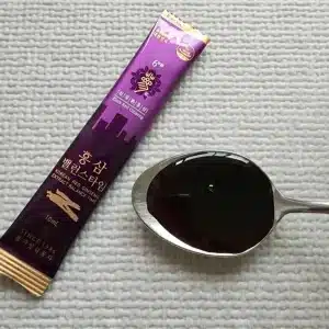 - Hồng sâm 6 năm tuổi cô đặc (ginsenoside Rg1+Rb1+Rg3 tổng 11mg/g, nội địa), ích mẫu (Hàn Quốc), táo đỏ (Hàn Quốc), đương quy, rễ sắn dây, hoa cúc, thục địa hoàng, lá ngải cứu, thân rễ thiên cung, thân rễ cây thương truật, rễ mẫu đơn, hoàng kỳ, phục linh, nấm linh chi, cam thảo, nước tinh khiết, nhân trần (Hàn Quốc).