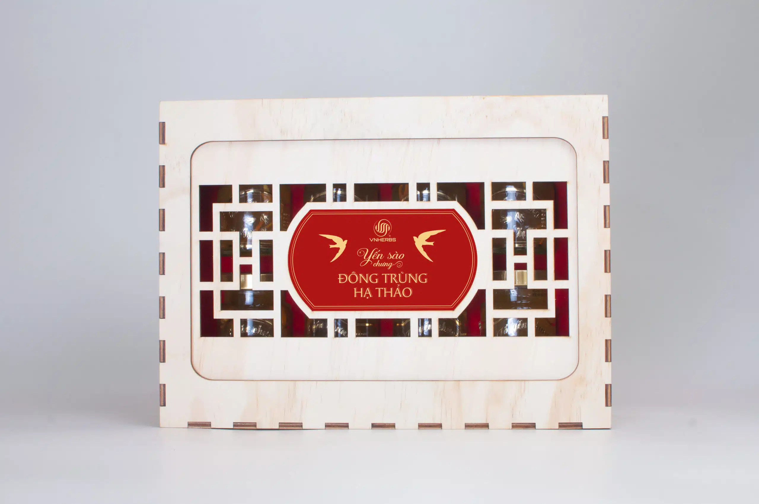 - Yến chưng Đông trùng hạ thảo Ký chủ nhộng: 10 gram sợi yến tươi, 1 con Đông Trùng Hạ Thảo Ký Chủ Nhộng sấy thăng hoa, đường kiêng, nước vừa đủ lọ 70ml